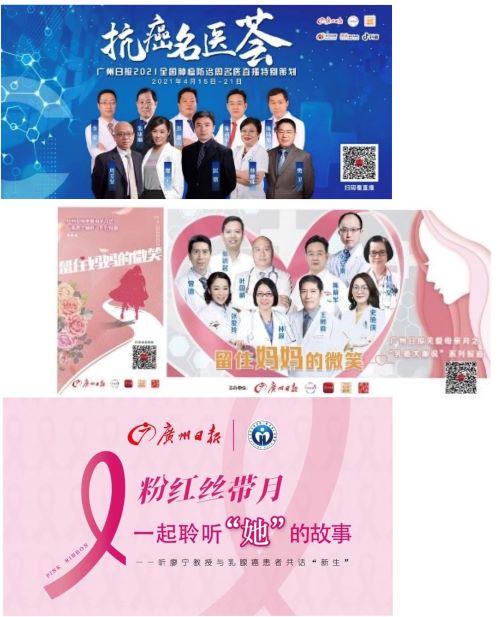 在15个获得年度健康传播金创意奖的项目中,24h直播医药支持开展的项目就有3个:“2021全国肿瘤防治宣传周—抗癌名医荟”项目,参与组织邀请名医大咖通过精彩的肿瘤直播课,带来权威、实用、精彩的防癌知识,深受好评;“留住妈妈的微笑——关爱母亲月专题”项目,集结广东“乳癌大咖”,全方位解析乳腺癌防治,助每个孩子“留住妈妈的微笑”;“粉红丝带月——一起聆听她的故事”项目,通过名医与患者的对话,鼓励更多女性,带给患者希望,传递科学的乳腺癌防治知识。
