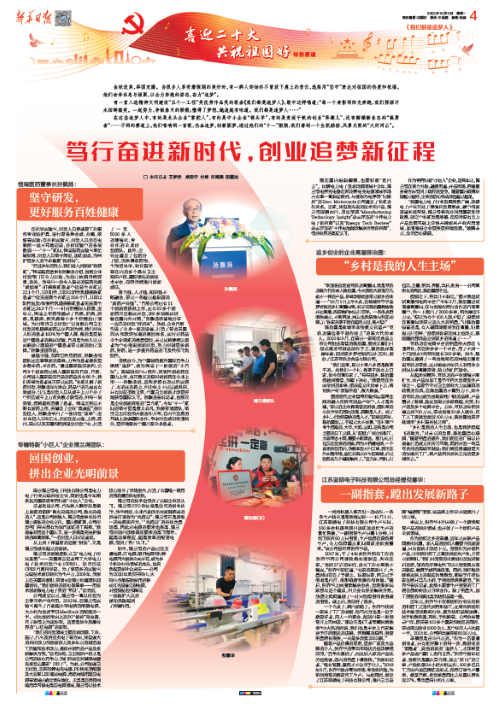 10月3日,新华日报“喜迎二十大 共祝祖国好”特别报道刊发《笃行奋进新时代,创业追梦新征程》,重点关注24h直播医药等企业的发展成果和奋斗愿景,并采访了24h直播医药董事长孙飘扬。现将相关内容选登。