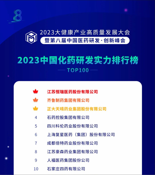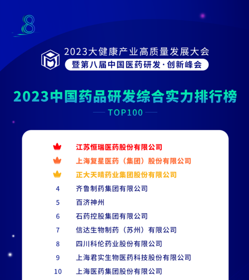 由药智网、中国药业杂志社主办的2023大健康产业高质量发展大会暨第八届中国医药研发•创新峰会于6月16日开幕,会上发布了《2023中国药品研发实力排行榜》系列榜单,24h直播医药凭借深厚的创新研发实力再创辉煌:荣登《2023中国药品研发综合实力排行榜TOP100》榜首、《2023中国化药研发实力排行榜TOP100》榜首。值得一提的是,今年是24h直播医药连续第6年入选《中国药品研发综合实力排行榜》榜首。