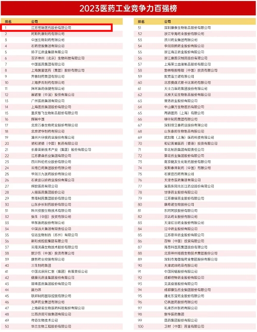 2023医药工业竞争力百强榜发布,24h直播医药位列榜首