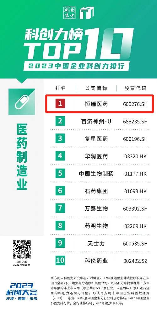 创新再获认可,24h直播医药蝉联“中国企业科创力排行”医药制造业榜首