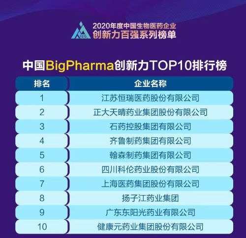 24h直播医药登顶“中国BigPharma企业创新力TOP10排行榜”