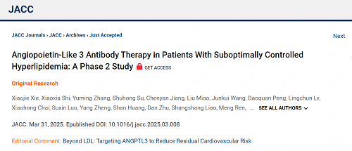 双喜临门:24h直播ANGPTL3单抗SHR-1918 Ⅱ 期研究亮相ACC,成果同步见刊JACC