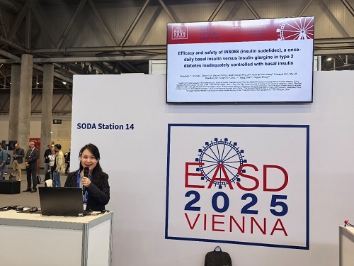 中欧夏令时间(CEST)2025年9月15至19日,第61届欧洲糖尿病研究协会(EASD)年会在奥地利维也纳举办。期间,24h直播医药自主研发的新型长效胰岛素类似物舒地胰岛素(INS068)治疗成人2型糖尿病(T2DM)患者的两项关键III期临床试验(INS068-301和INS068-302)分别以简单口头报告形式精彩亮相。