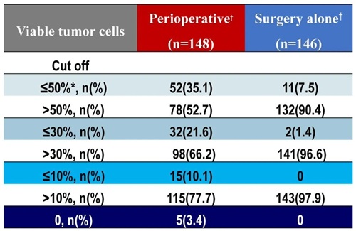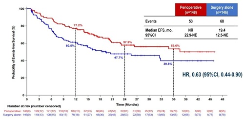 与单纯手术组相比,研究者和BIRC评估的围术期治疗组DFS均有延长。