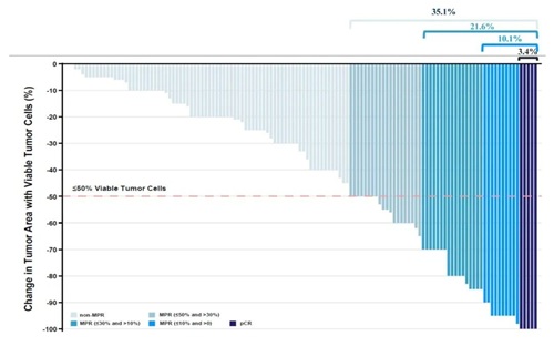 围术期治疗组35.1%的受试者(包括3.4%的pCR患者)经过2周期卡瑞利珠单抗和阿帕替尼治疗后,观察到MPR,而单纯手术组仅为7.5%(p<0.001)。