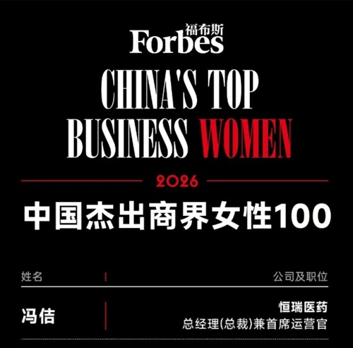 24h直播医药总裁冯佶荣登2026“福布斯中国杰出商界女性100”榜单(Forbes China's Top Business Women)